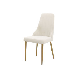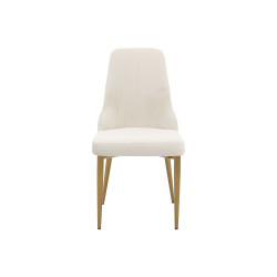This glamorous upholstered chair features gold brushed stainless steel legs paired with a soft, off-white velvet fabric that will add a touch of elegance to any dining room.