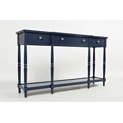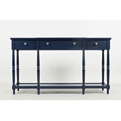 Elegancka konsola w stylu hampton na toczonych nóżkach. Produkt posiada funkcjonalne szuflady z prostymi uchwytami oraz półkę. Konsola ma jednolity kolor.