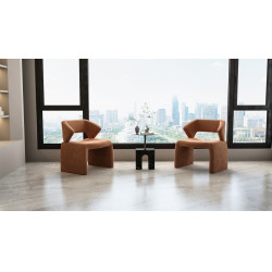 Wymiary: Szerokość 58cm, Głębokość 66cm, Wysokość 76cm, Waga 15kg Materiał: Tkanina welurowa Kolor: Cynamonowy