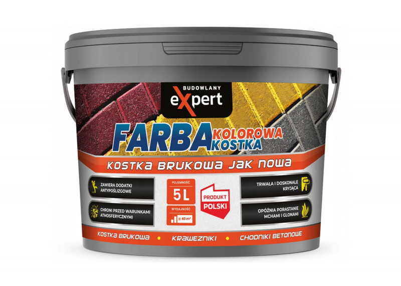 Farba do renowacji i odnawiania kostki brukowej, krawężników, chodników oraz elementów betonowych. Po nałożeniu nadaje nawierzchni nowy, trwały kolor i jednocześnie tworzy ochronną powłokę. Zawiera d ...
